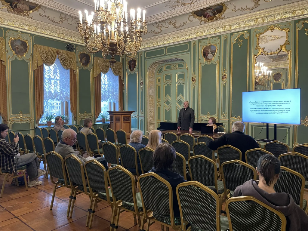 В понедельник, 16 марта, в Зеленом зале РИИИ состоялся научный семинар «Разнообразие современного портретного жанра в изобразительном искусстве: от психологического портрета к портрету “без лица”» (цикл «Ценностные основания русской художественной культуры»). Основной докладчик — доктор искусствоведения, декан факультета теории и истории искусств, профессор Санкт-Петербургской академии художеств имени Ильи Репина, ведущий научный сотрудник РИИИ Светлана Михайловна Грачёва.