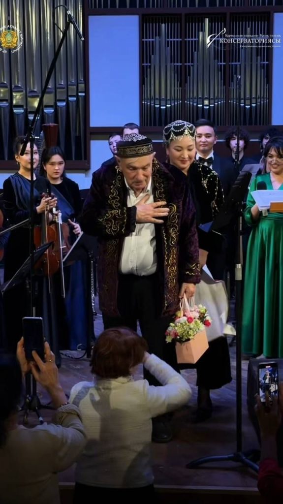 Премьера была осуществлена силами Студенческого симфонического оркестра Казахской национальной консерватории имени Курмангазы, дирижер — Барбара Поплавска. Солист — артист оркестра Мариинского театра Артур Джавадян. Организаторами события стали Казахская национальная консерватория имени Курмангазы и Международный центр сближения культур Олжаса Сулейменова.